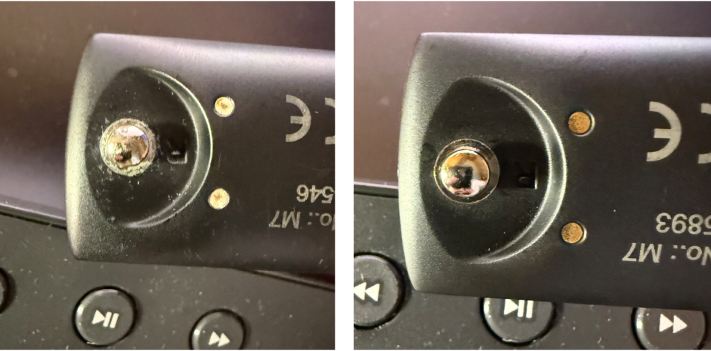 Wipe the transmitter pins with a soft cloth to keep them clean.