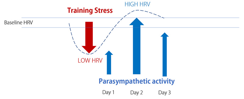 Higher HRV = more parasympathetic activity = more energy directed toward recovery