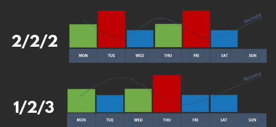 Two of the easiest and most effective ways you can build your training week around this concept is the 1/2/3 and 2/2/2.