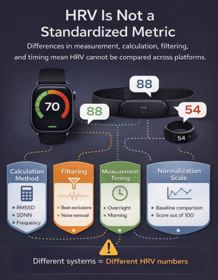 That’s why HRV from one platform often cannot be directly compared to HRV from another.