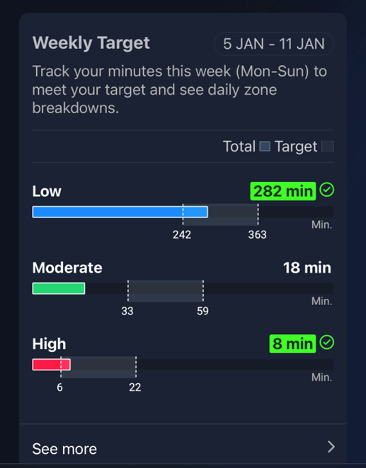 When you hit your weekly zone targets consistently — and your recovery stays strong — that’s the foundation of long-term fitness progress.